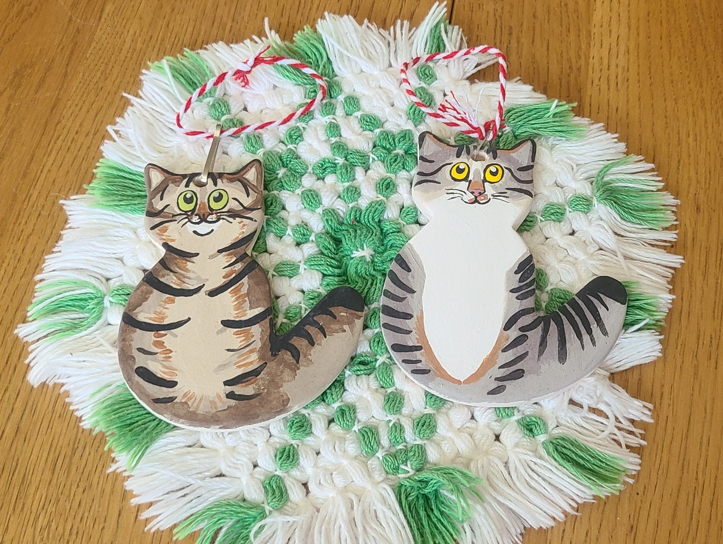 Want your kitty to hang on a tree or wall or wherever you want? Each ceramic ornament is hand painted down to each little detail!